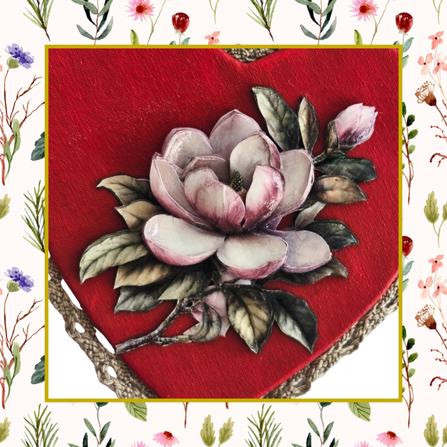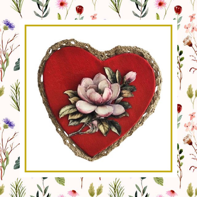 Le médaillon se compose d’un cœur en carton recouvert de tissu ancien